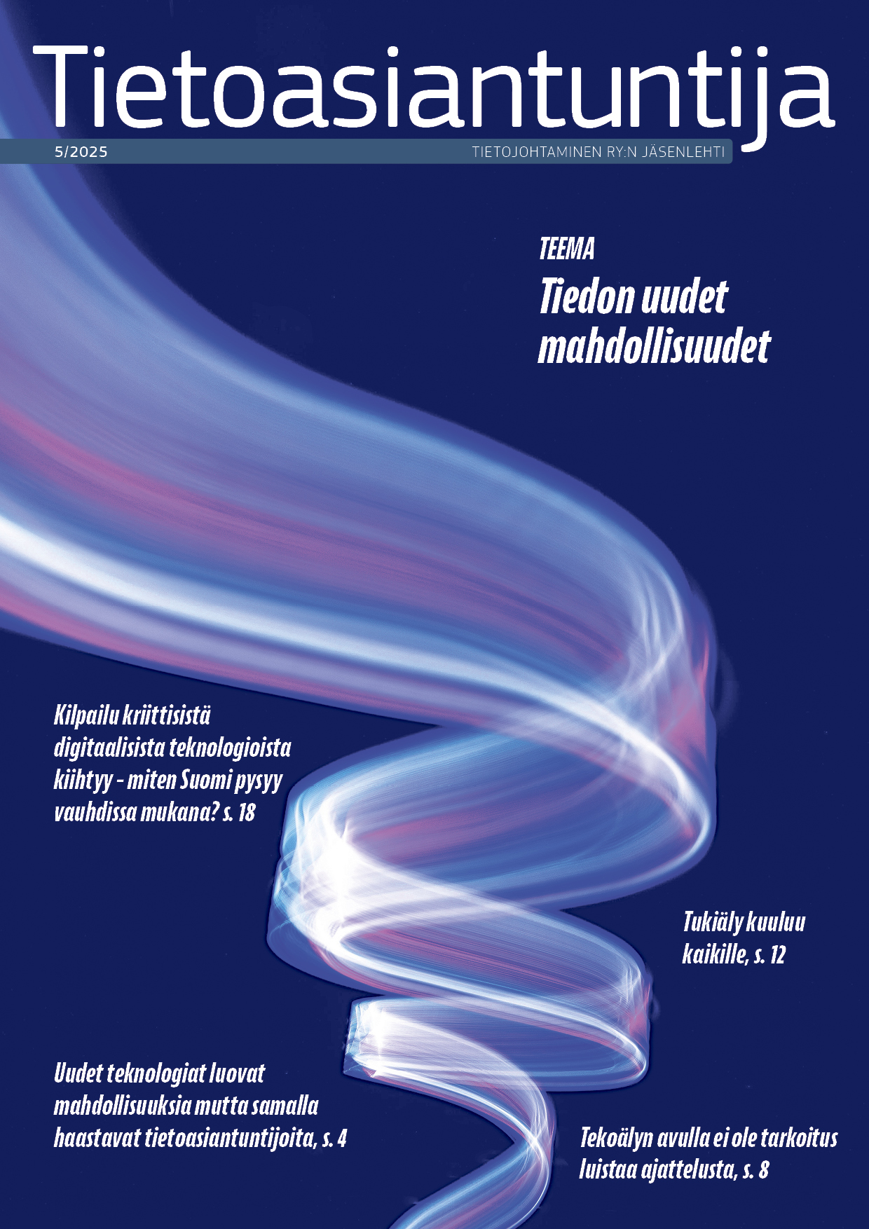 – Teknologian ymmärrys, kriittinen arviointikyky ja vastuullinen datan hyödyntäminen ovat keskeisiä taitoja, joiden merkitys kasvaa. Osaamisen kehittäminen, eettisyys, kokeilukulttuuri ja yhteiskehittäminen auttavat organisaatioita hyödyntämään tekoälyn mahdollisuuksia. Tietoasiantuntijoilla on meneillään olevassa muutoksessa keskeinen rooli.